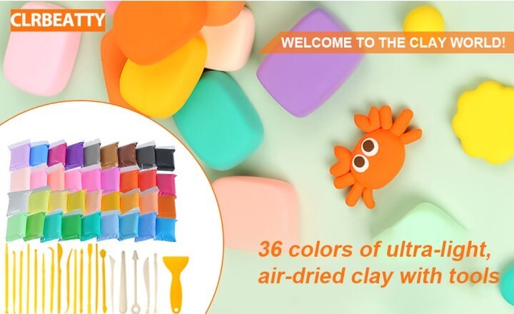 • 益智玩具超轻 1000g 聚合物粘土套装 36 色套装儿童风干 DIY 造型粘土